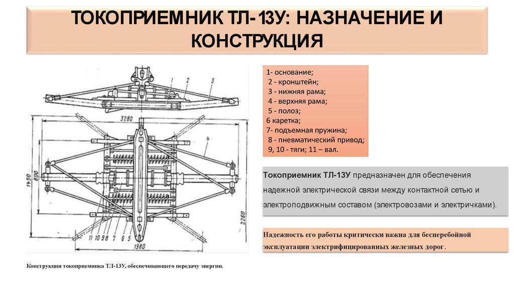 ТОКОПРИЕМНИК ТЛ-13У: НАЗНАЧЕНИЕ ИКОНСТРУКЦИЯ