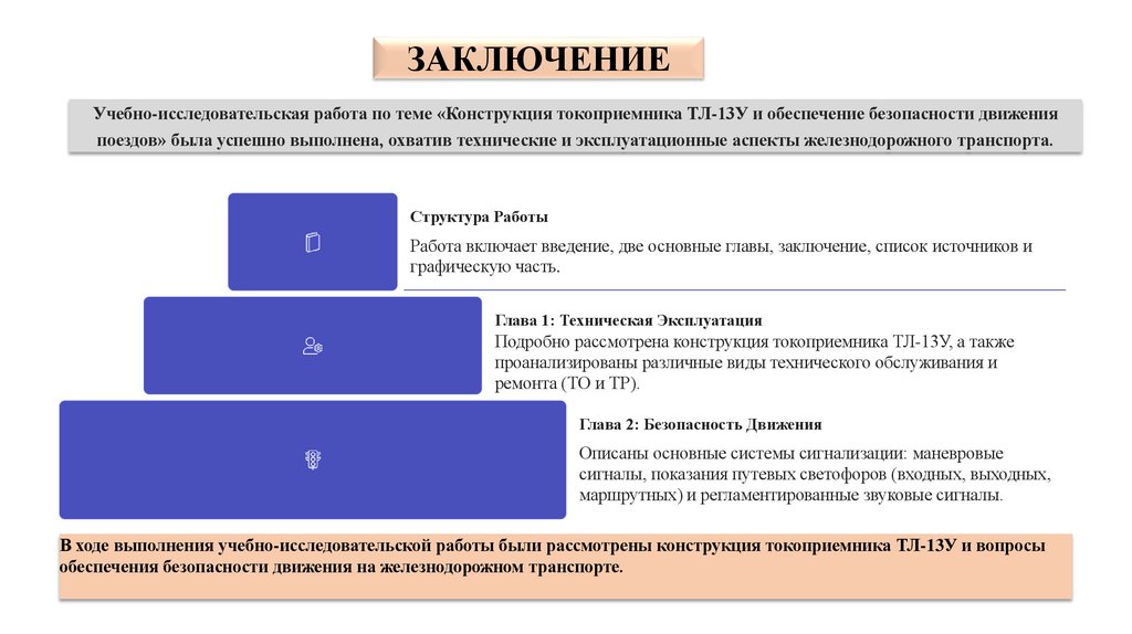 ЗАКЛЮЧЕНИЕУчебно-исследовательская работа по теме «Конструкция токоприемника ТЛ-13У и обеспечение безопасности движения