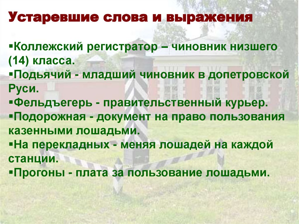 Устаревшие слова и выраженияКоллежский регистратор – чиновник низшего