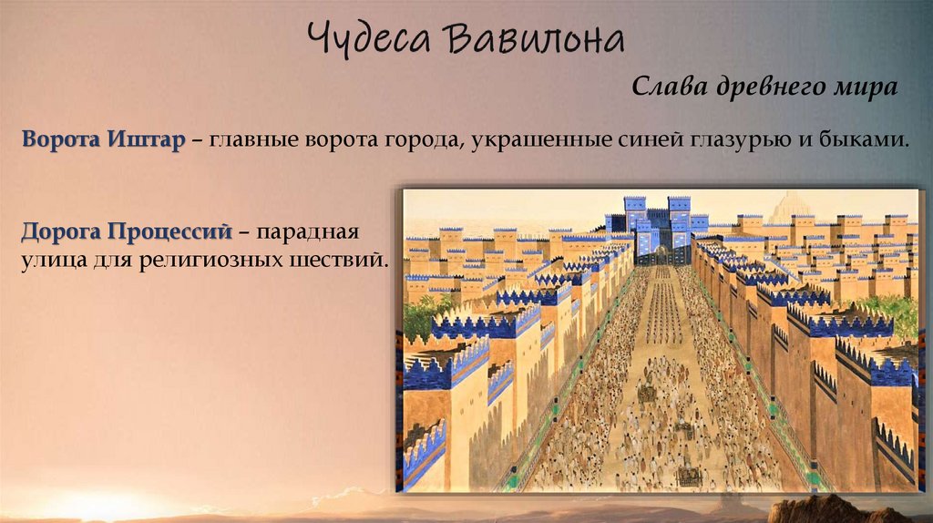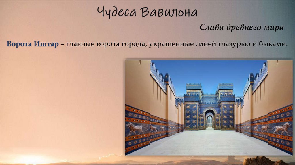 Слава древнего мираВорота Иштар – главные ворота города, украшенные синей глазурью и быками.