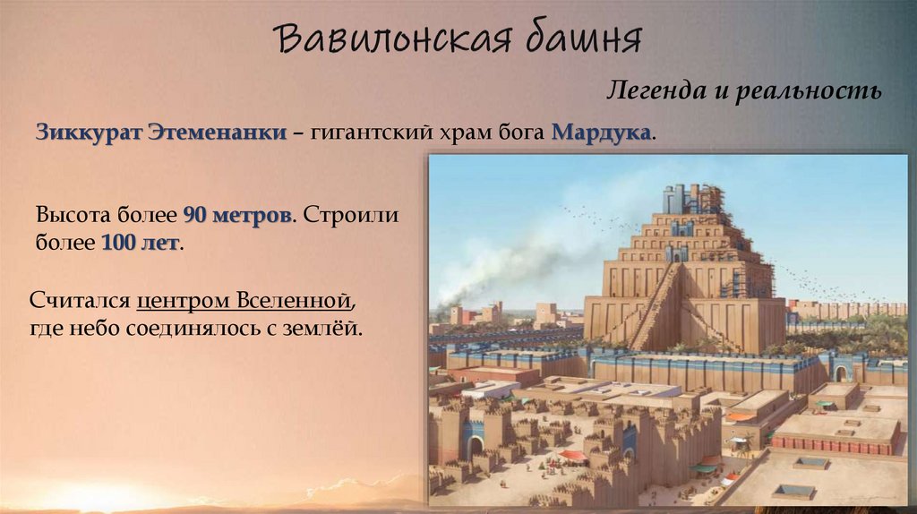Легенда и реальностьЗиккурат Этеменанки – гигантский храм бога Мардука.