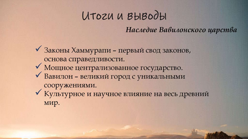 Наследие Вавилонского царстваЗаконы Хаммурапи – первый свод законов,