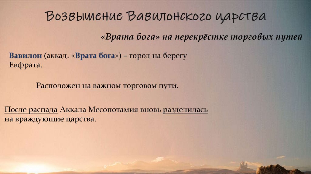 «Врата бога» на перекрёстке торговых путейВавилон (аккад. «Врата бога») – город на берегу