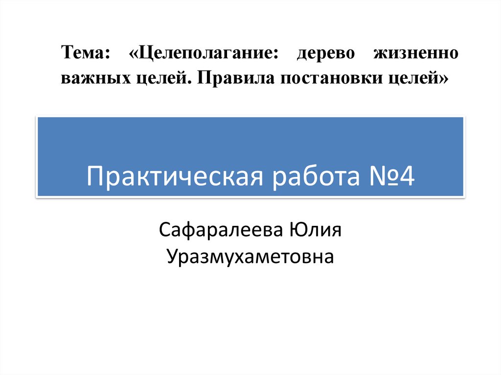 Тема: «Целеполагание: дерево жизненноважных целей. Правила постановки целей»