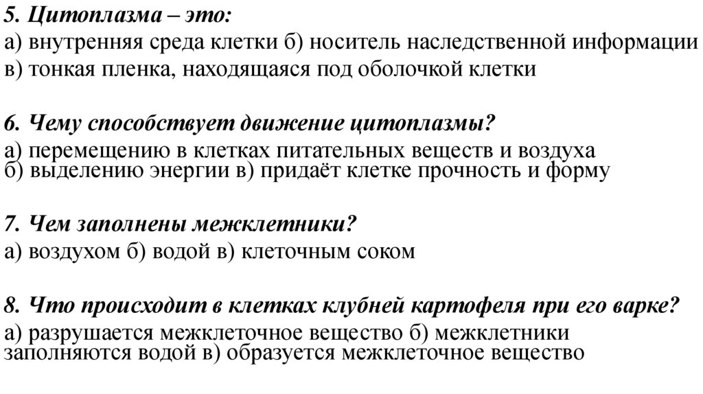 5. Цитоплазма – это:а) внутренняя среда клетки б) носитель наследственной информации