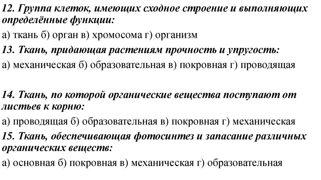 12. Группа клеток, имеющих сходное строение и выполняющихопределённые функции: