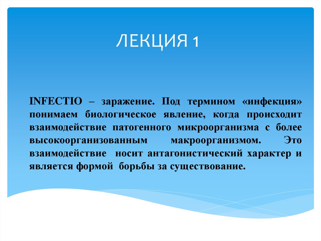 INFECTIO – заражение. Под термином «инфекция»понимаем биологическое явление, когда происходит