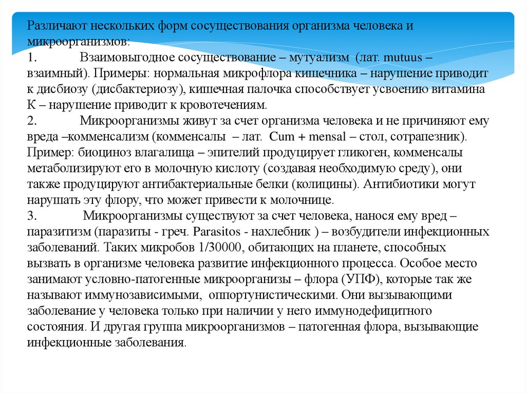 Микроорганизмы живут за счет организма человека и не причиняют ему