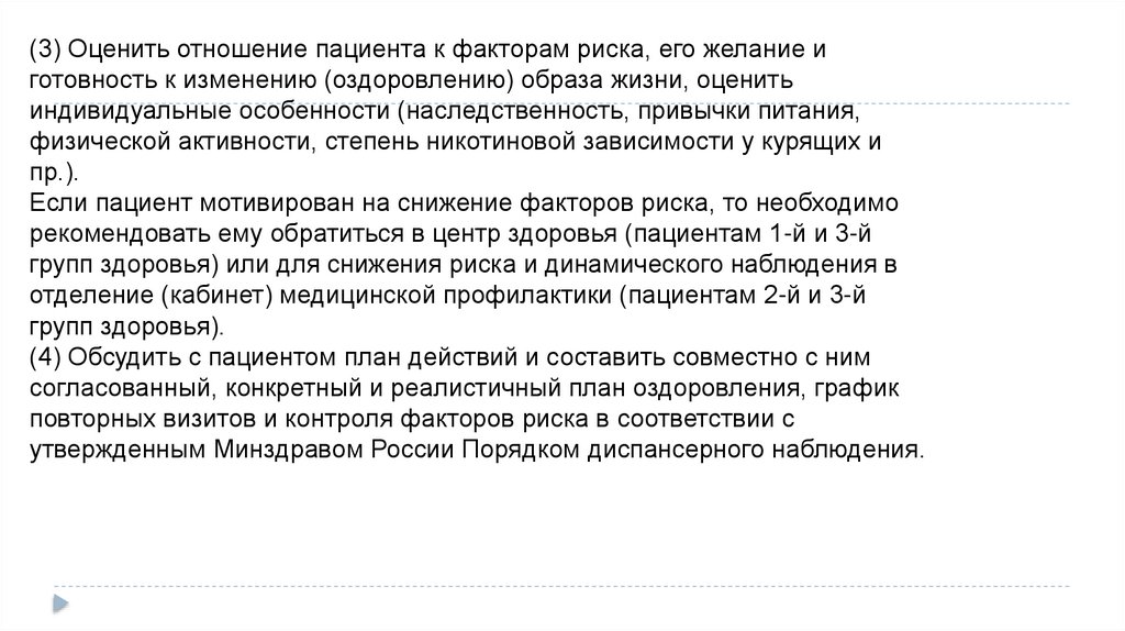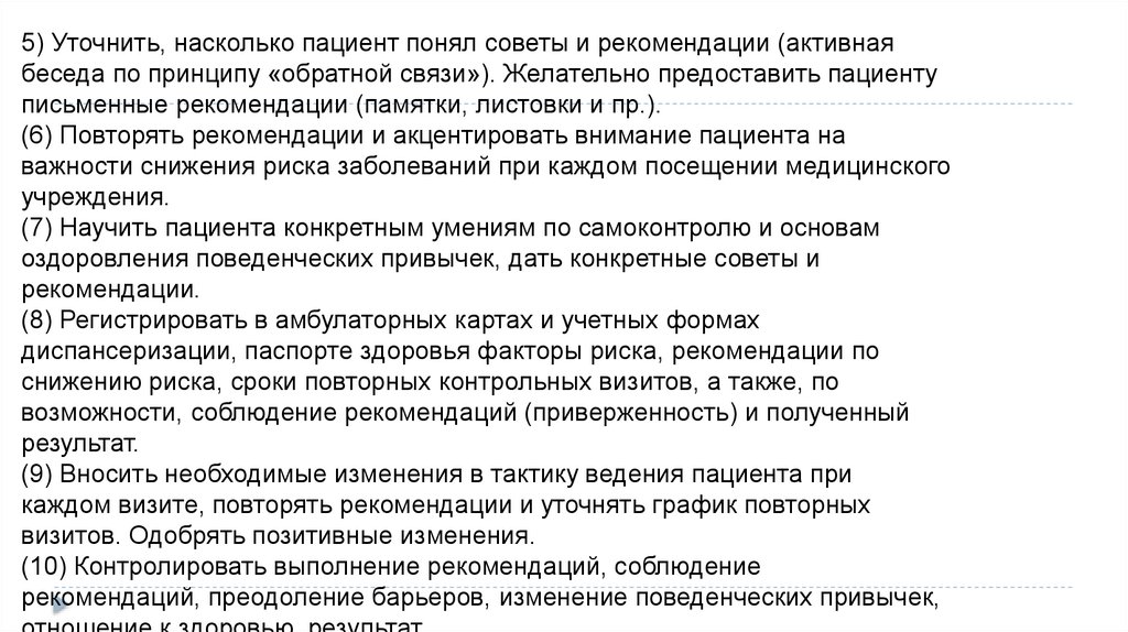 снижению риска, сроки повторных контрольных визитов, а также, по