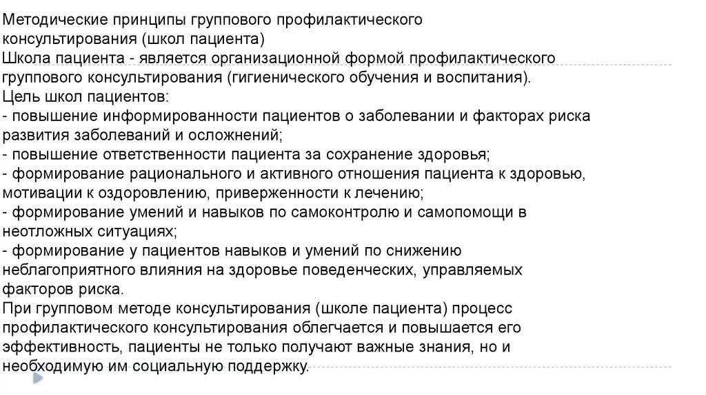 Методические принципы группового профилактическогоконсультирования (школ пациента)