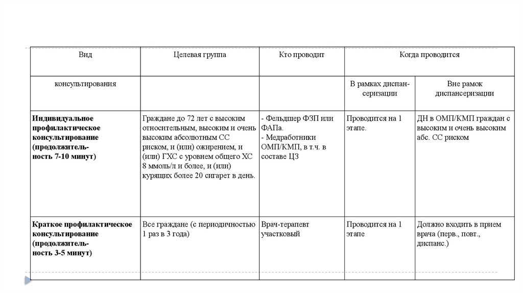профилактического консультирования:
