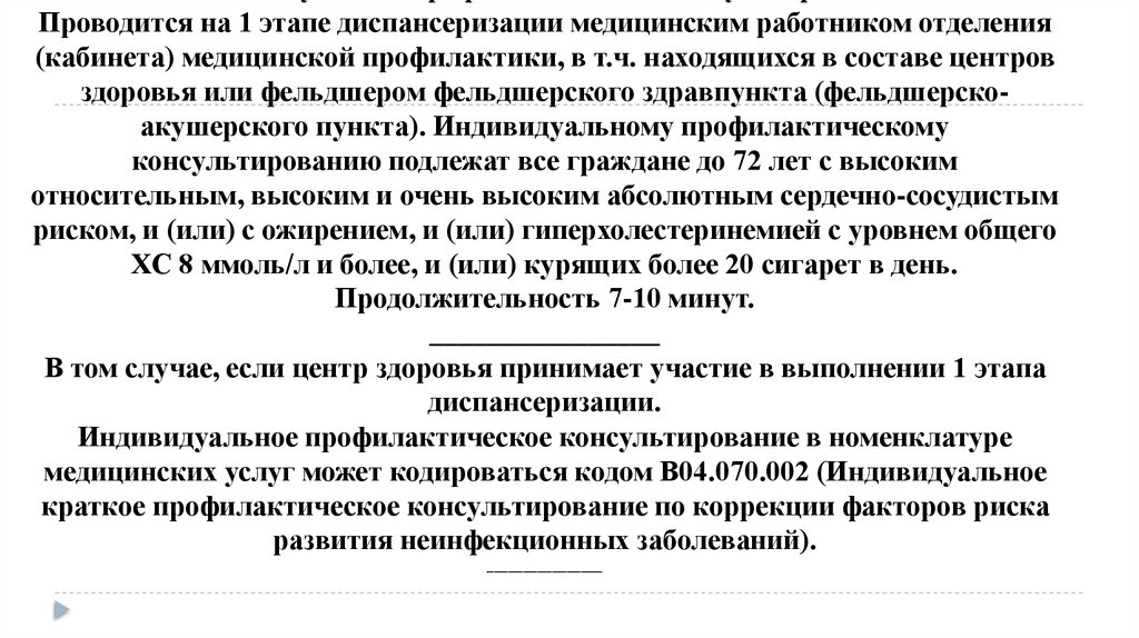 здоровья или фельдшером фельдшерского здравпункта (фельдшерскоакушерского пункта). Индивидуальному профилактическому