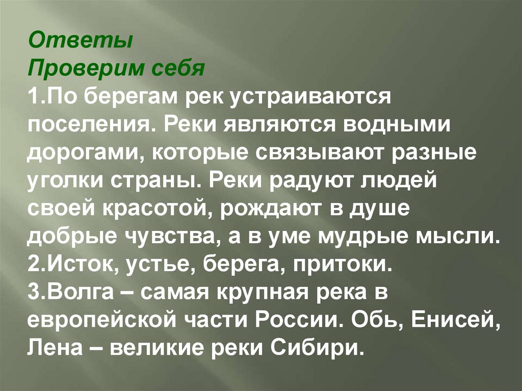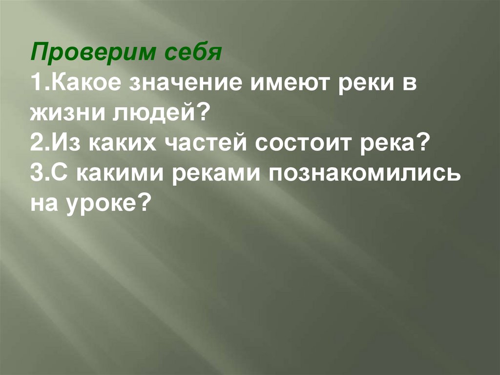 Проверим себя1.Какое значение имеют реки в