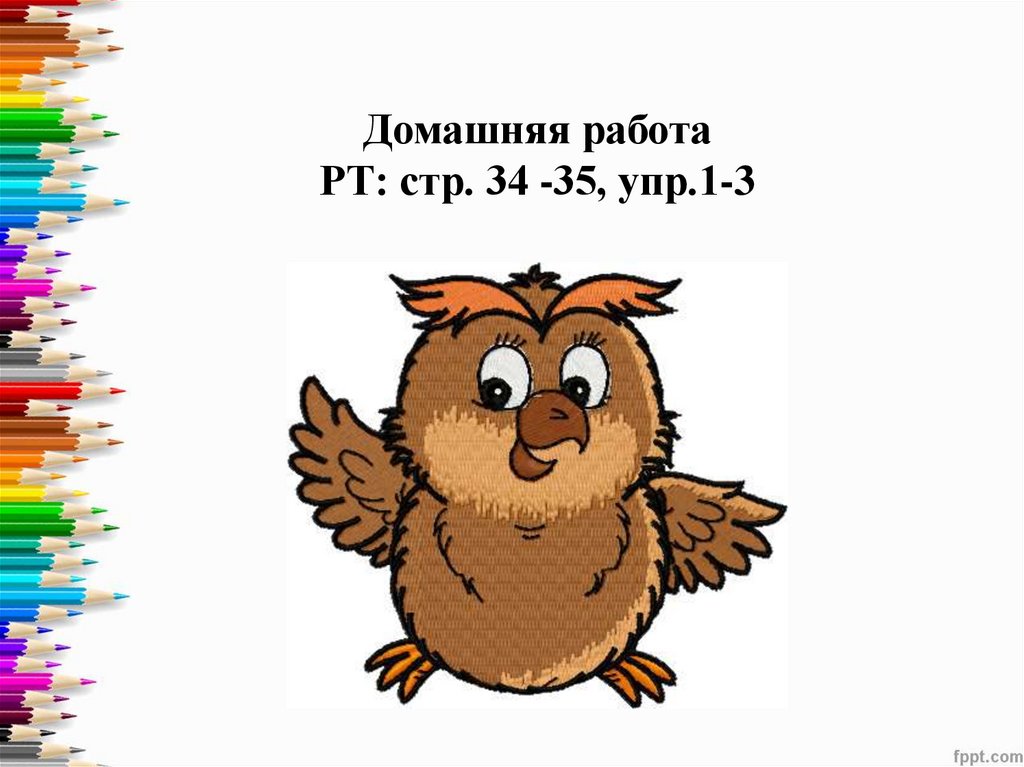 Домашняя работаРТ: стр. 34 -35, упр.1-3