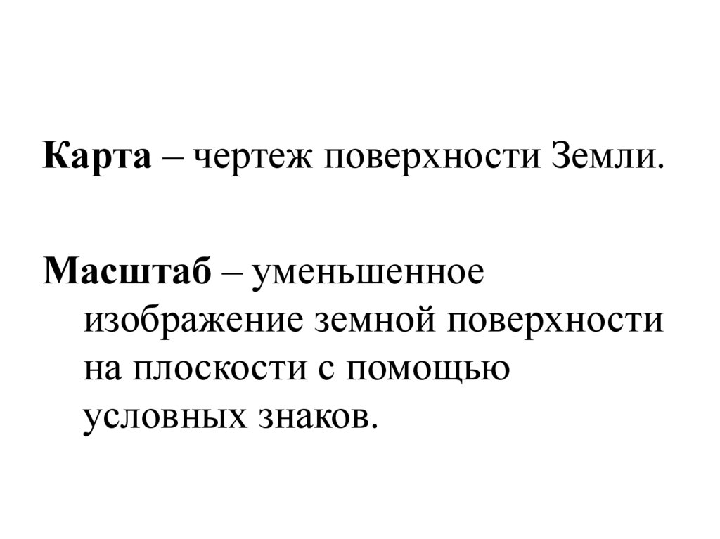 Карта – чертеж поверхности Земли.Масштаб – уменьшенное