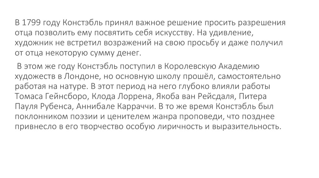 Пауля Рубенса, Аннибале Карраччи. В то же время Констэбль был