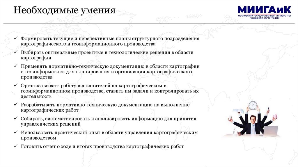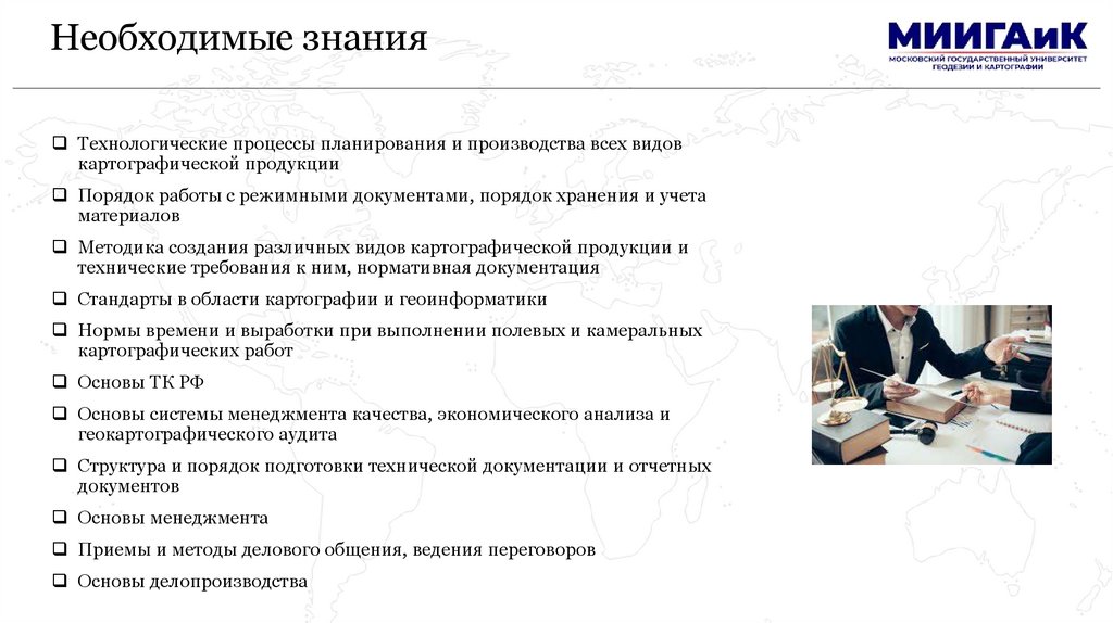 Необходимые знанияТехнологические процессы планирования и производства всех видов