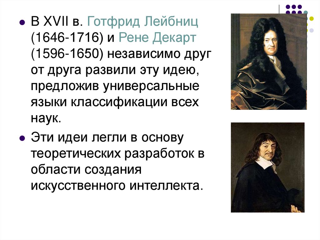В XVII в. Готфрид Лейбниц(1646-1716) и Рене Декарт