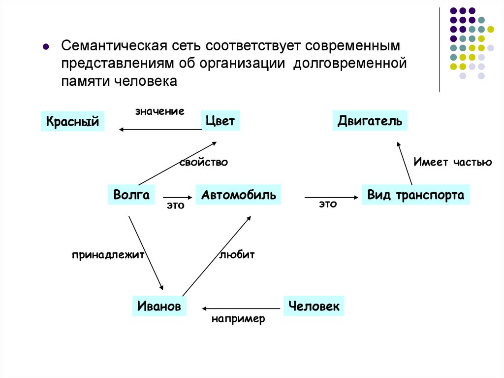 Семантическая сеть соответствует современнымпредставлениям об организации долговременной