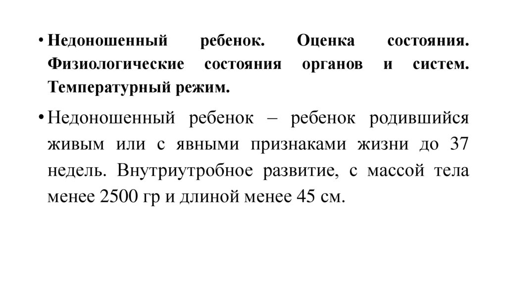 Признаки недоношенности:1) морфологические признаки недоношенности