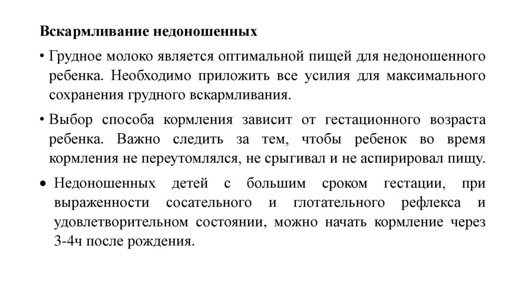 Вскармливание недоношенных• Грудное молоко является оптимальной пищей для недоношенного