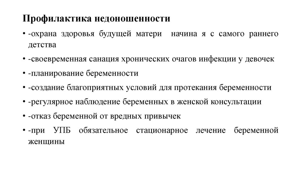 Профилактика недоношенности• -охрана здоровья будущей матери