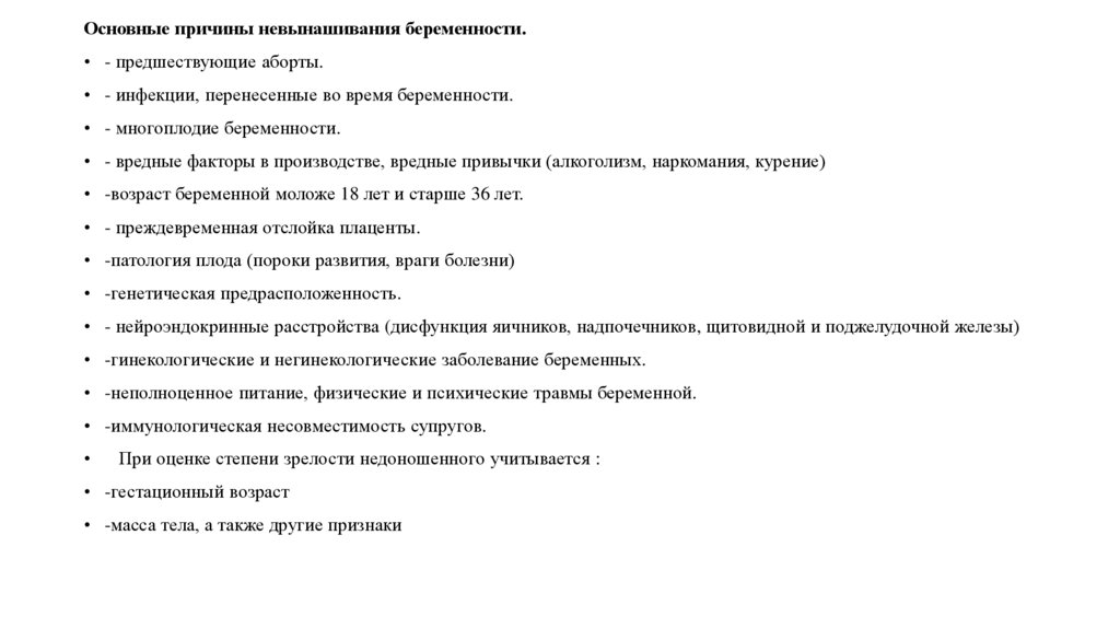 Основные причины невынашивания беременности.• - предшествующие аборты.