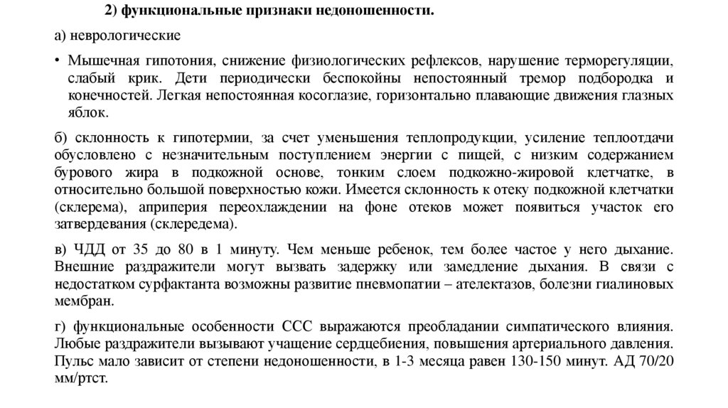 • Мышечная гипотония, снижение физиологических рефлексов, нарушение терморегуляции,