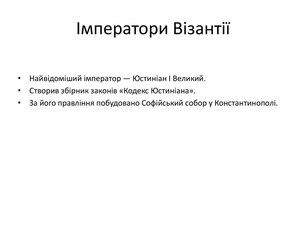 Імператори Візантії• Найвідоміший імператор — Юстиніан І Великий.