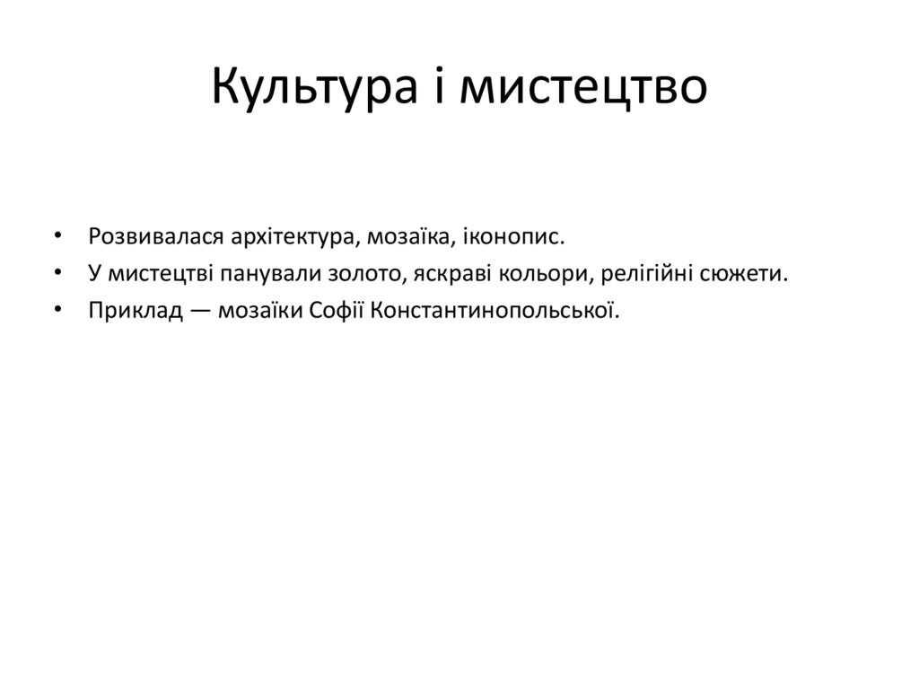 Культура і мистецтво• Розвивалася архітектура, мозаїка, іконопис.