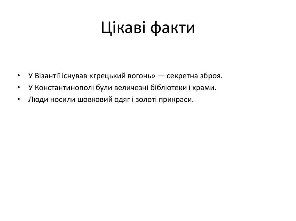 Цікаві факти• У Візантії існував «грецький вогонь» — секретна зброя.