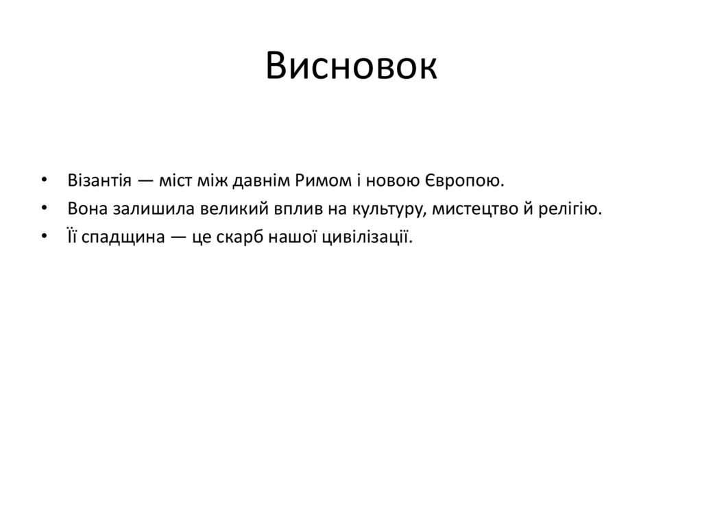 Висновок• Візантія — міст між давнім Римом і новою Європою.