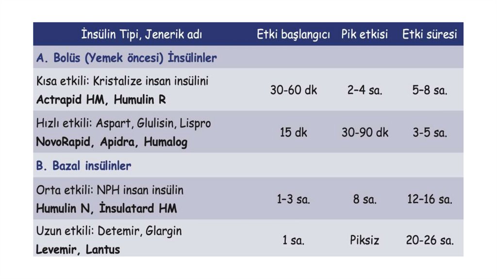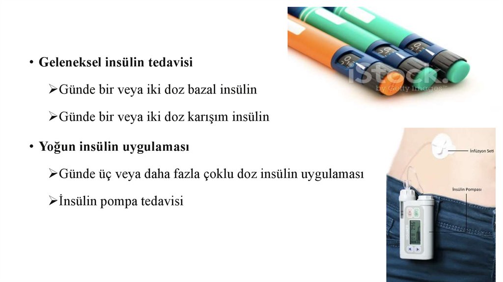 • Geleneksel insülin tedavisiGünde bir veya iki doz bazal insülin