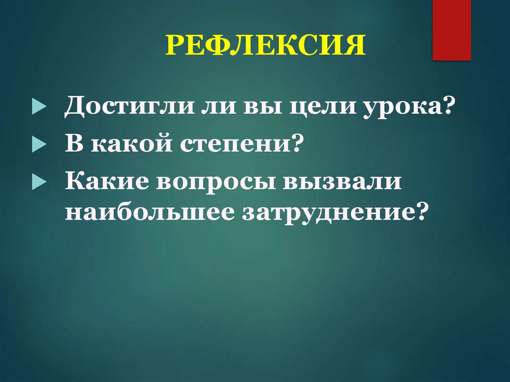 РЕФЛЕКСИЯДостигли ли вы цели урока?