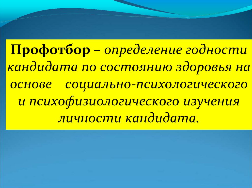 Профотбор – определение годностикандидата по состоянию здоровья на