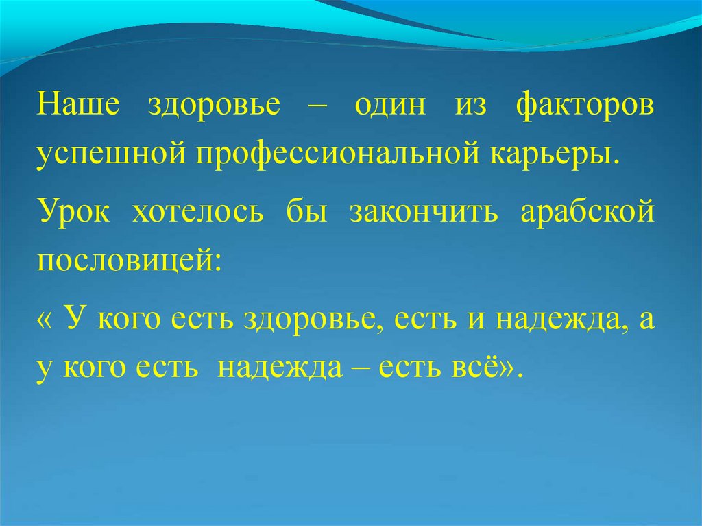 Наше здоровье – один из факторовуспешной профессиональной карьеры.