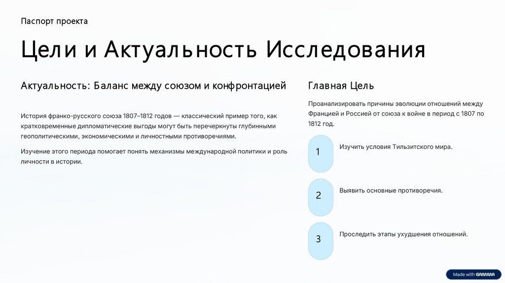 Паспорт проектаЦел и и Акт уал ь ность Исследования