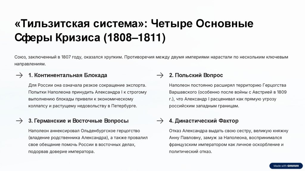 «Тильзитская система»: Четыре ОсновныеСферы Кризиса (1808–1811)