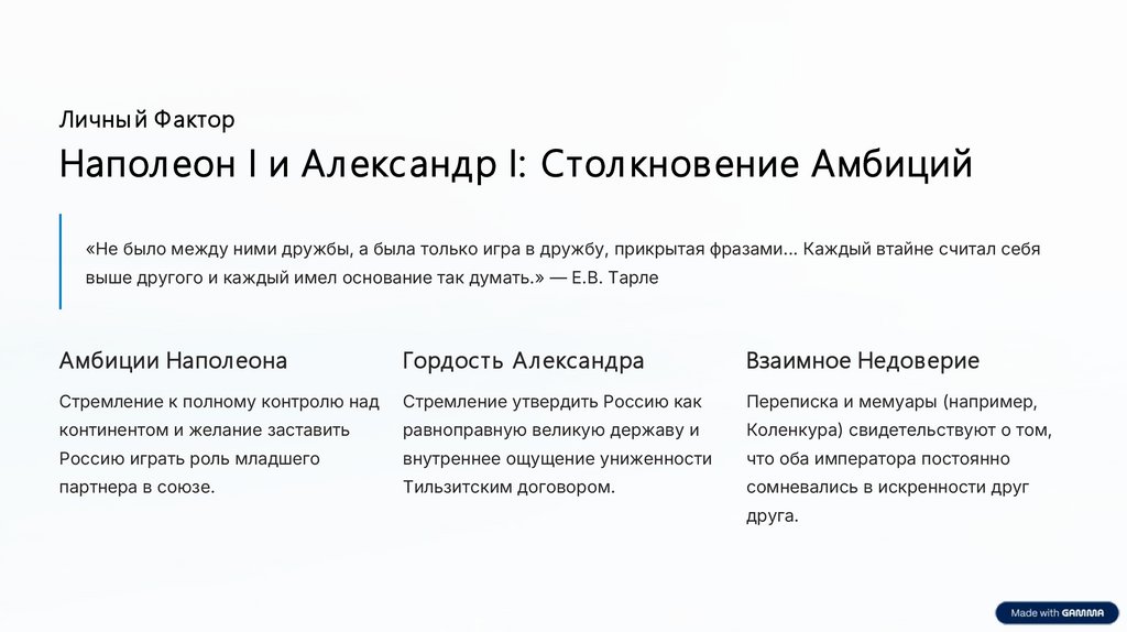 Личны й Ф акторНаполеон I и Алекс андр I: Стол кновение Амбиций