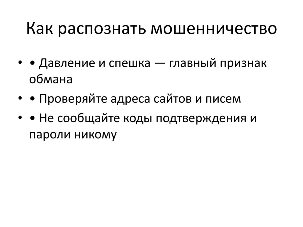 Как распознать мошенничество• • Давление и спешка — главный признак