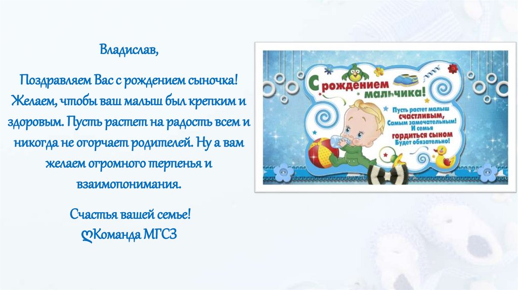 Владислав,Поздравляем Вас с рождением сыночка!