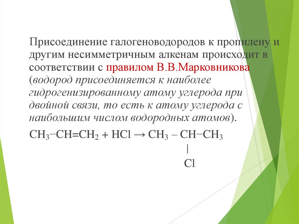 CH3−CH=CH2 + HCl → CH3 – CH−CH3