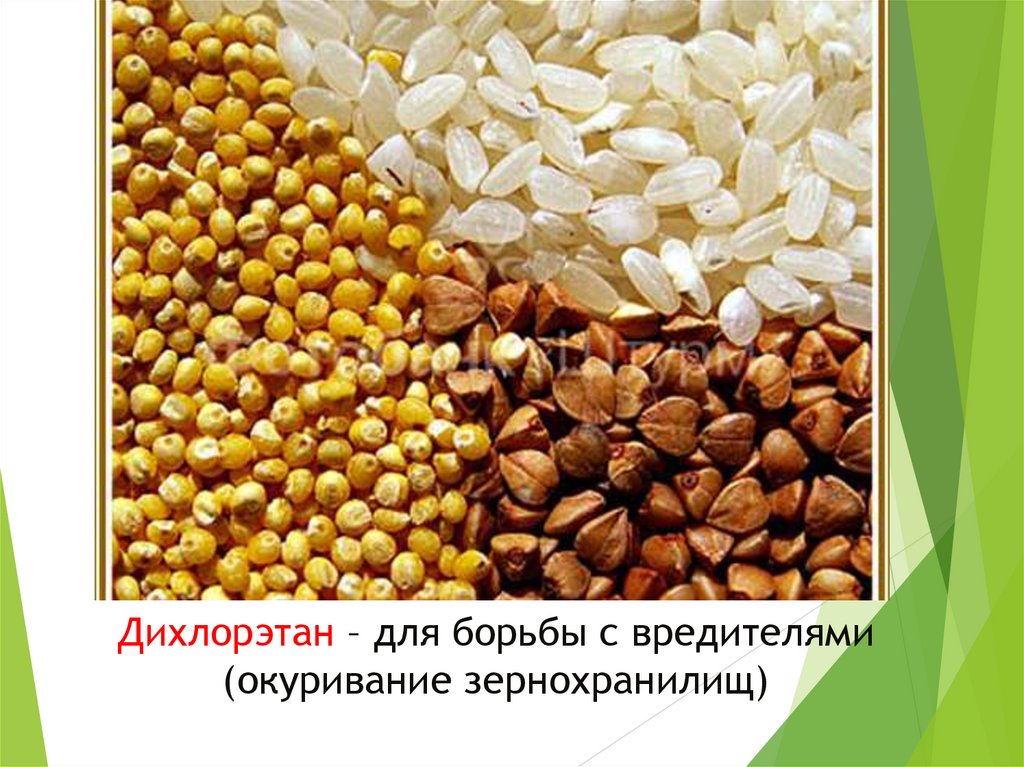 Дихлорэтан – для борьбы с вредителями(окуривание зернохранилищ)