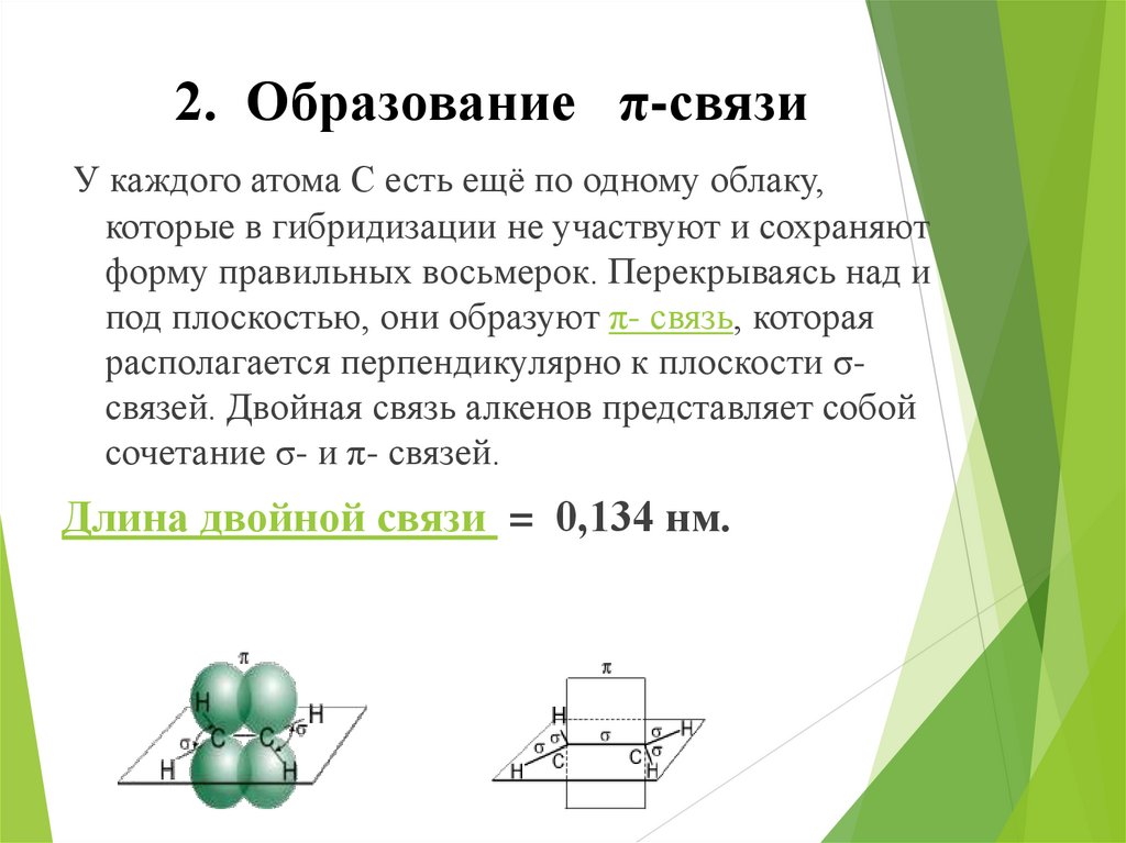 располагается перпендикулярно к плоскости σсвязей. Двойная связь алкенов представляет собой