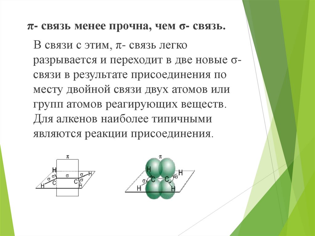 π- связь менее прочна, чем σ- связь.В связи с этим, π- связь легко