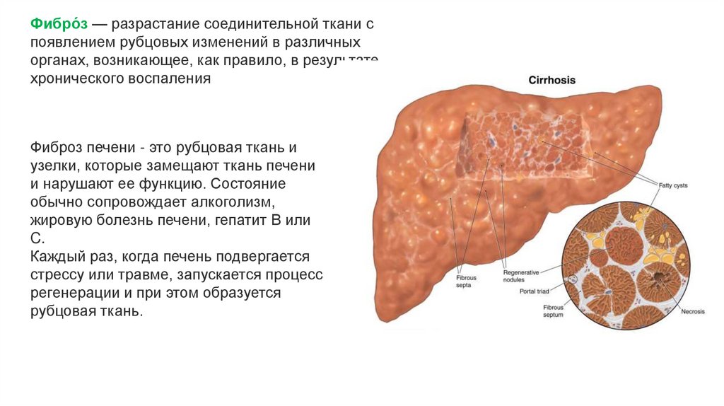 Фибро́з — разрастание соединительной ткани споявлением рубцовых изменений в различных