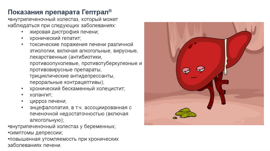 Показания препарата Гептрал®•внутрипеченочный холестаз, который может