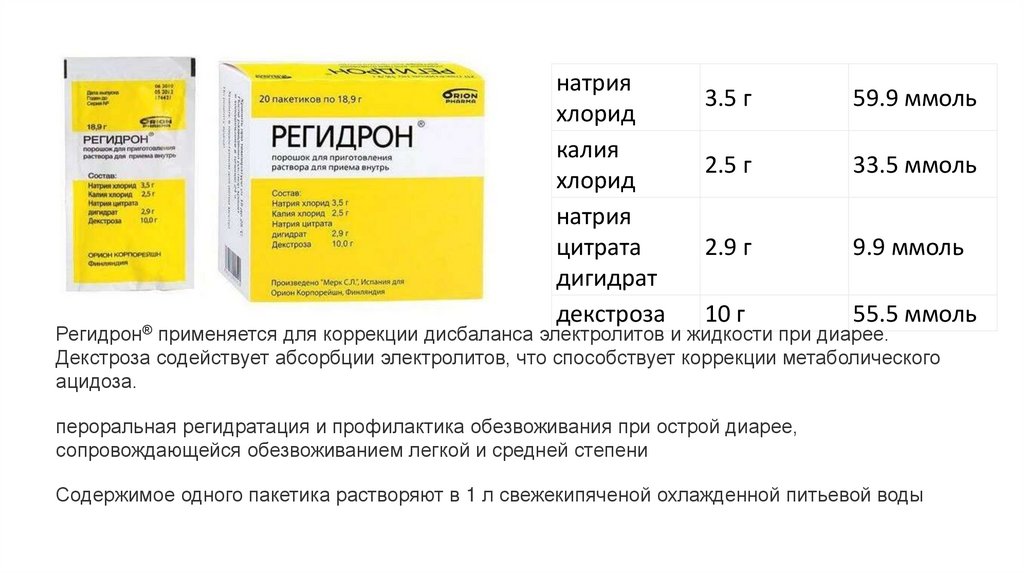 Раствор, приготовленный при растворении 1пакетика препарата в 1 л воды, по составу