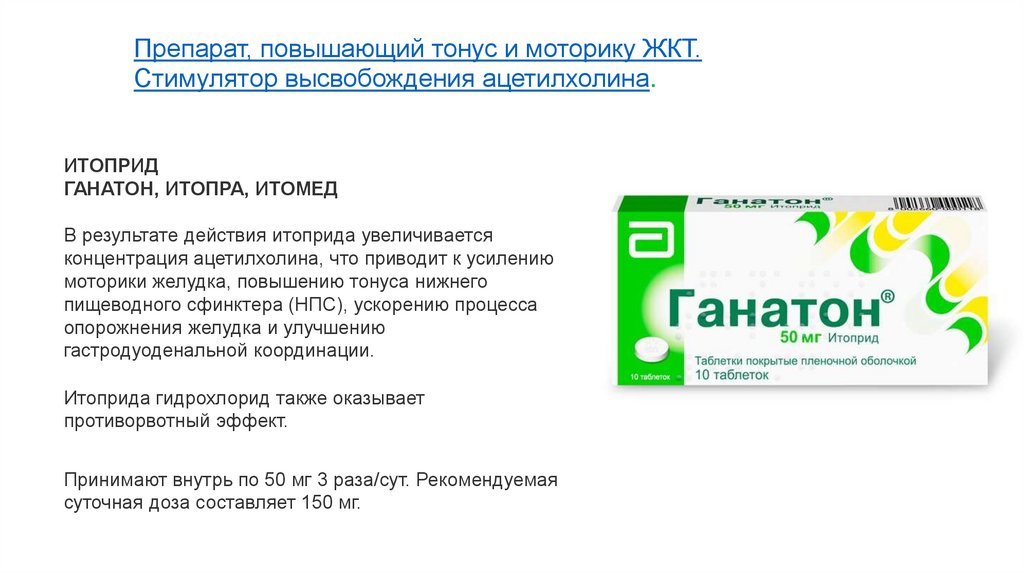 Препарат, повышающий тонус и моторику ЖКТ.Стимулятор высвобождения ацетилхолина.