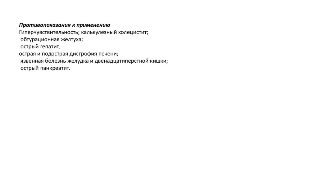 Противопоказания к применениюГиперчувствительность; калькулезный холецистит;